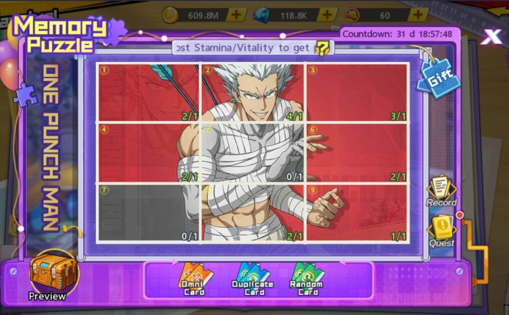 When you do stuff like main normal stage, elite stage, nightmare stage, boss challenge, conqueror challenges, unnatural disaster and talent perfection, you get a chance to obtain puzzle pieces. You’ll need 9 piece to claim rewards, and there is no limit to how many times you can claim.
